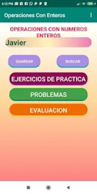 "Operaciones Con Enteros" es una aplicación educativa diseñada para facilitar el aprendizaje de operaciones matemáticas básicas con números enteros. Disponible en Android de forma gratuita, esta herramienta se estructura en tres niveles de ejercicios: práctica, problemas y evaluación. En la sección de práctica, los estudiantes pueden ejercitar la suma, resta, multiplicación, división, potenciación y radicación, además de realizar operaciones combinadas. Esta variedad asegura un aprendizaje integral y progresivo.